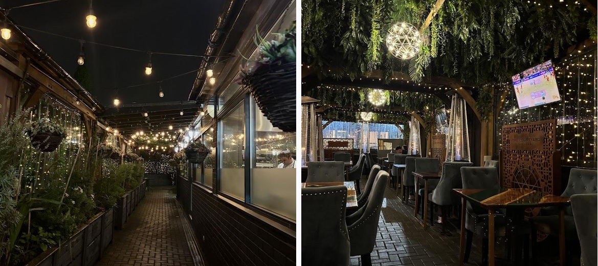 Gorgeous atmosphere both indoors and throughout the courtyard with great food and top tier service. Menu offers a variety of food including Vegetarian and Gluten Free options; perfect for family members who are coeliac and vegetarian. Effective ordering method on a tablet, and staff who never miss! Muhammad Hashim’s attention to detail was great. He was extremely helpful throughout our meal ensuring we were happy with our food and drinks. Furthermore, he went above and beyond in taking pictures for our family and informing us of other areas to take more. Alam’s a firm favourite delivering consistency across all aspects of serving delicious meals suitable for all. They also offer parking behind the restaurant for which the charge can be redeemed at payment.